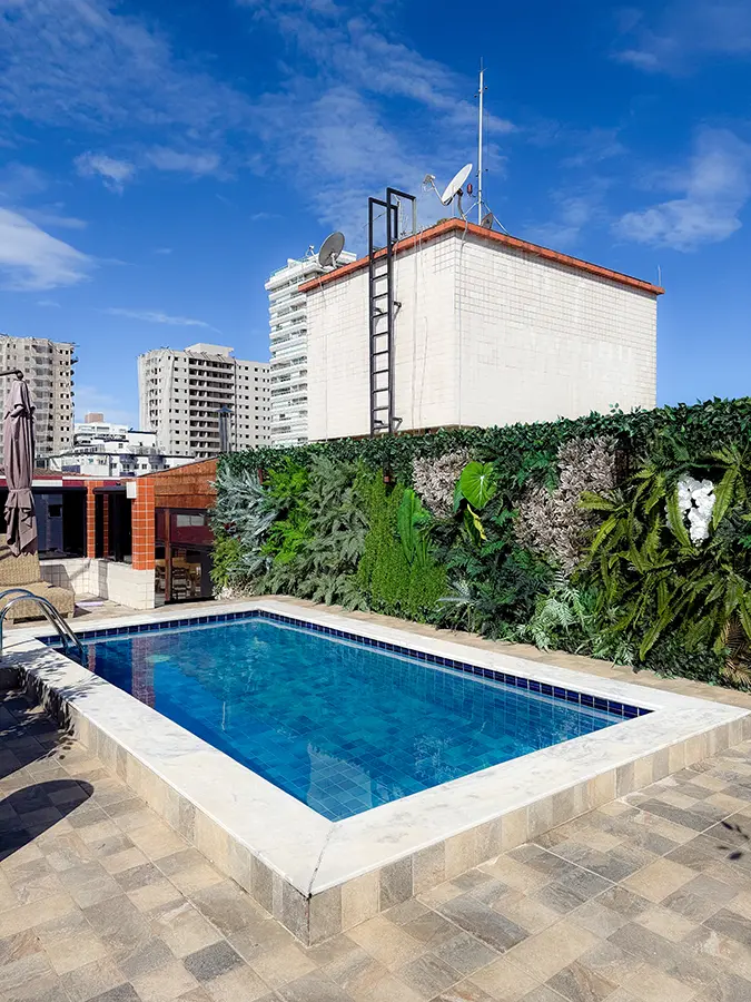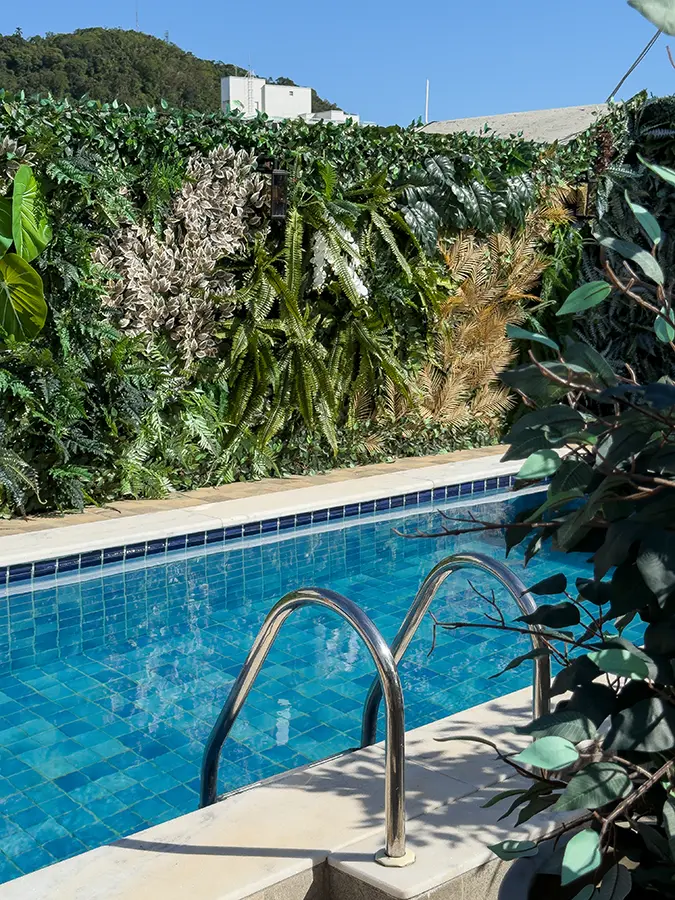 Complementando a experiência, o projeto se estende à área externa com piscina exclusiva, onde o paisagismo foi desenhado para criar um clima de refúgio: mais privacidade, mais aconchego e uma atmosfera de lazer sofisticado, conectando arquitetura e natureza em um único cenário.